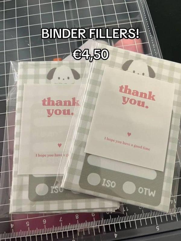Binder fillers can also be customized by color. packaged in sets of 10.